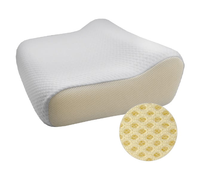 Poduszka ortopedyczna Twin Plus Aero 3D w zestawie z zaprojektowaną w technologii 3D welurową, miękką powłoczką. Siatka, w którą są wyposażone jej boki umożliwia cyrkulacje powietrza zapewniając dłuższe użytkowanie poduszki.